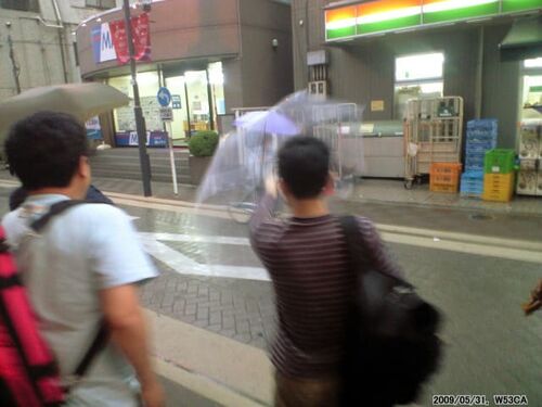 さて、小休止時間も終了、やはり雨の中をトボトボとスタジオに戻ります。ホルヘはここでお別れ(ZENちゃんは前半戦終了後に帰還)。 道すがらにこんなものを見つけました(笑)。モントゥナーとアイマールが共同経営する店か(笑)。是非とも入ってみたいもの…