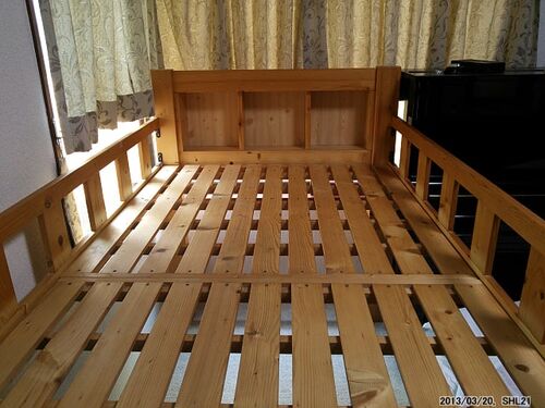 ここに居を移してから、座敷童との生活には必要だろう、と運び込んだベッド。これが、4月からの共同生活のために、かえって邪魔になり処分することになった。後に運び込まれる学習机の設置スペースをつくるためにである。考えてみたら、このベッドの下は全く…