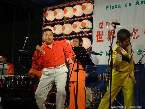 ダンスイベントでは、ここぞというところで演奏する Yo No Sé Mañana けっこうピリッとおさえが効いています ホーンセクション、がんばりすぎないで~(笑) さらに、恒例の Mando No.5 昨年、誤植が発覚したプラカードをまだ使っています(笑) はい、両手…