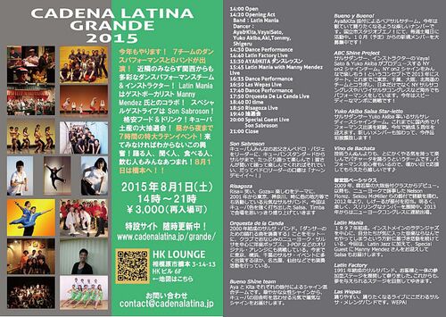 蒸し暑い日が続いていますね。とにかく洗濯物が乾かないのが何よりもつらい感じです(笑)。なので、涼風とはいわずに熱風的な情報をお伝えしようと思います。みなさまもご存知のCADENA LATINA GRANDEが今年もやってまいります。恐らく(というより必ず)そ…