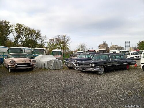 古き良き時代的な風景。調布飛行場の近くにはこんな光景を目にすることができる。なんのことはない、自動車を取り扱うとある企業の敷地におかれた商品か、それとも趣味的な何かだ。キャデラックとかも見かけたような気がするが、こんなバカでかい車を気軽に…
