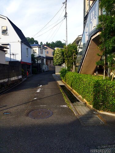 さて、ポストの想い出に浸っているわけにはゆかない。西国分寺駅に向かって坂を上ってゆく。すると、その坂道のいたるところで水の流れる音がするのである。その正体は、写真の右に写っている側溝である。これ、下水用の側溝ではない。先の、真姿の池湧水群…