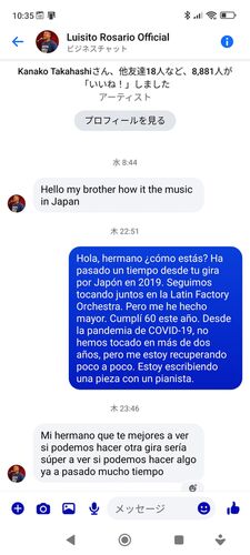 一昨日の早朝、スマートフォンのMessengerにメッセージリクエストなるものが表示されまして、送信者を見たところ、Luisito Rosario Officialからのメッセージ。ん?これはうかつに開くのも返信も出来ないなと思い、昨日になって、ようやくメッセージを読み解…