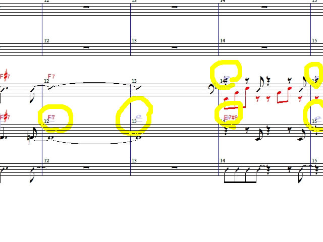 手塚氏の作品の真似、、、いやいや、本当に不明な部分があるものですから・・・。実はこれ、昨年CON SENOR AIMARの時に受け取ったもの。「何だか、変になって出来なくなってしまったんですよ」と受け取った楽譜データなのですが、本当に変だ・・・。この丸を付けた部分の音符、消すことが出来ません。唯一反応してくれるのが「隠し音符の表示」だけなので、丸ごと削除するしか無さそうです。ちょっと脱力・・・、何だよこれ~(笑)。