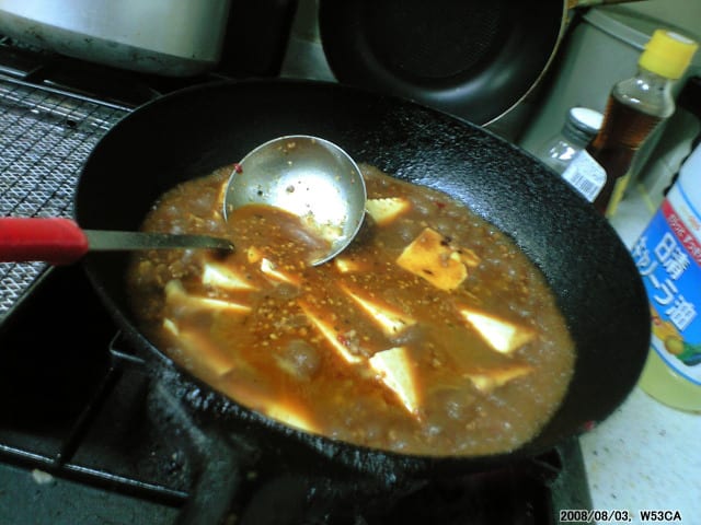 麻婆豆腐のリクエストがありましたので急遽炎を上げることになりました。最近、CABEZÓNが訪問するときには何故か麻婆豆腐の材料が揃っています(笑)。最初はゆうこちゃんの舌に合わせてマイルドバージョン、第二弾はモントゥナーへのお土産用に通常バージョンを・・・。