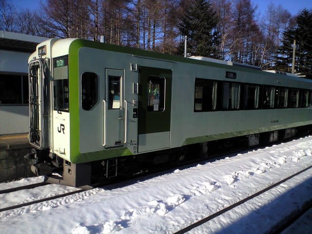 都下と違い、列車は1時間に1本程。待合室には灯油ストーブもあり、マターリした時間を過ごしていたら列車がやってきました。ここから3時間弱で自宅に着く事が出来ます。それなりのコストがかかりますが、その分楽に移動できる鐵道も良いものですね。