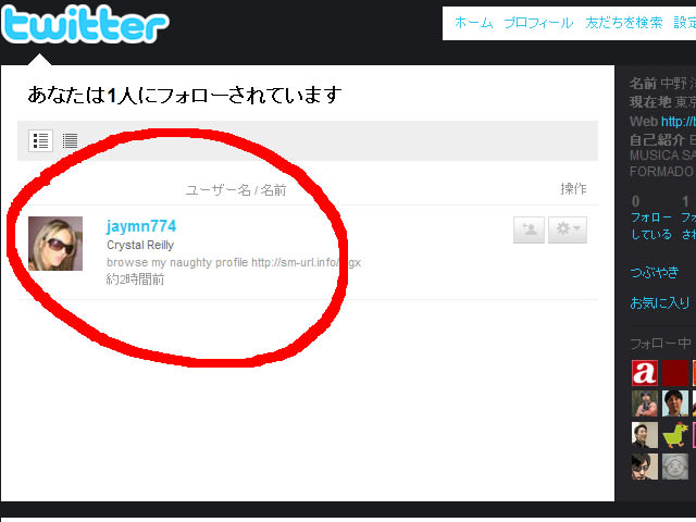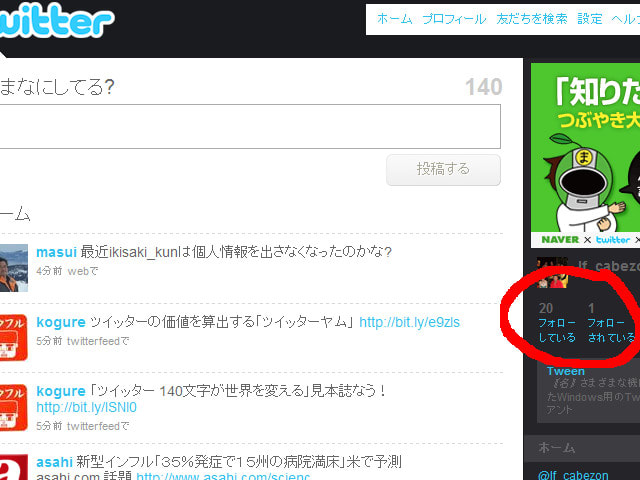 先のmixiという限定された世界でも活発に利用されているようなので、いっそのこと本ブログの脇に登場させようかと登録してみました。このTwitterは、不特定多数の人がアクセスしているために、フォロー、いわゆる追っかけシステムが搭載されています。下手するとストーカーですな(笑)