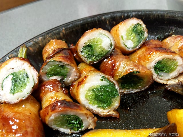 三つ葉をバラ肉で巻いて一品できあがり。アスパラ巻きをつくったことさえないのだが、意外としっかりできあがるものだと感心してしまった(笑)。肉を巻いたつなぎ目から焼いてゆくのか、、、それで肉がばらけないくらいしっかりくっついて、あとは焼いたときの肉の縮み方でしっかりと巻き上がるということね。三つ葉の香りも歯ごたえも楽しい。