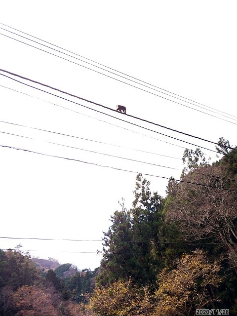 しかも、見上げると電線を渡るおサルさんまで。一行は、見ず知らずの態を装いながら、さらに進みましたとさ。