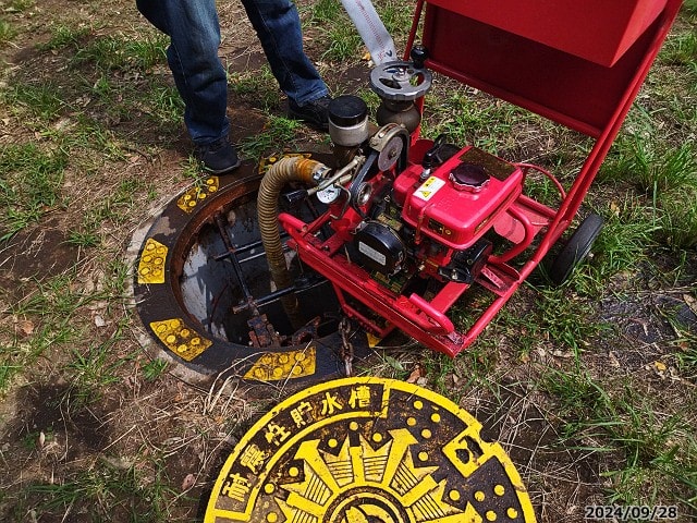台風の影響で、中止になってしまった防災フェスタ。CABEZÓNは、放水担当でありました。中止になったものの、来年のこともありますので、せめて恥とはなりませぬように訓練を(笑)。